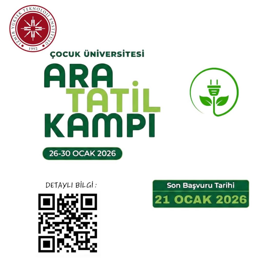 İYTE Çocuk Üniversitesinde 26-30 Ocak 2026 tarihleri arasında düzenleyeceğimiz “Ara Tatil Kampı” için başvurular başladı. Eğlenceli atölyelerle bilimi öğreteceğimiz kampımıza tüm çocuklarımızı bekliyoruz. Detaylı bilgi için: